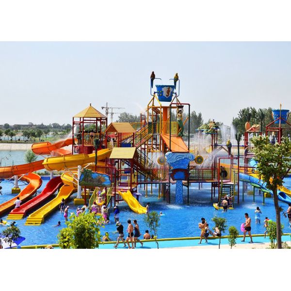 2. Compound items: Spiral slides, skip bucket, water sprays , cartoon/ animal icons, water climb net and etc for family fun.